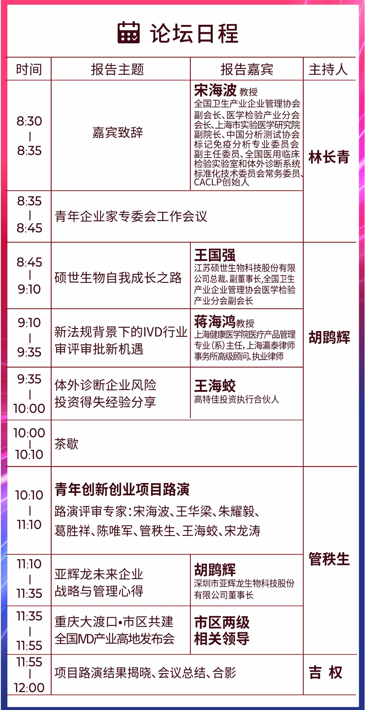 借第十届中国体外诊断产业发展大会、“创之声”第八届中国实验医学大会、第二十届中国国际检验医学暨输血仪器试剂博览会、第三届中国国际IVD上游原材料暨制造流通供应链博览会、第五届中国IVD流通企业论坛、第三届中国体外诊断关键原材料及零部件论坛之契机,由全国卫生产业企业管理协会医学检验产业分会主办的“亮·检验—第六届体外诊断青年企业家论坛”将于2023年5月26日在南昌国际博览城绿地铂瑞酒店会议中心隆重举行。
