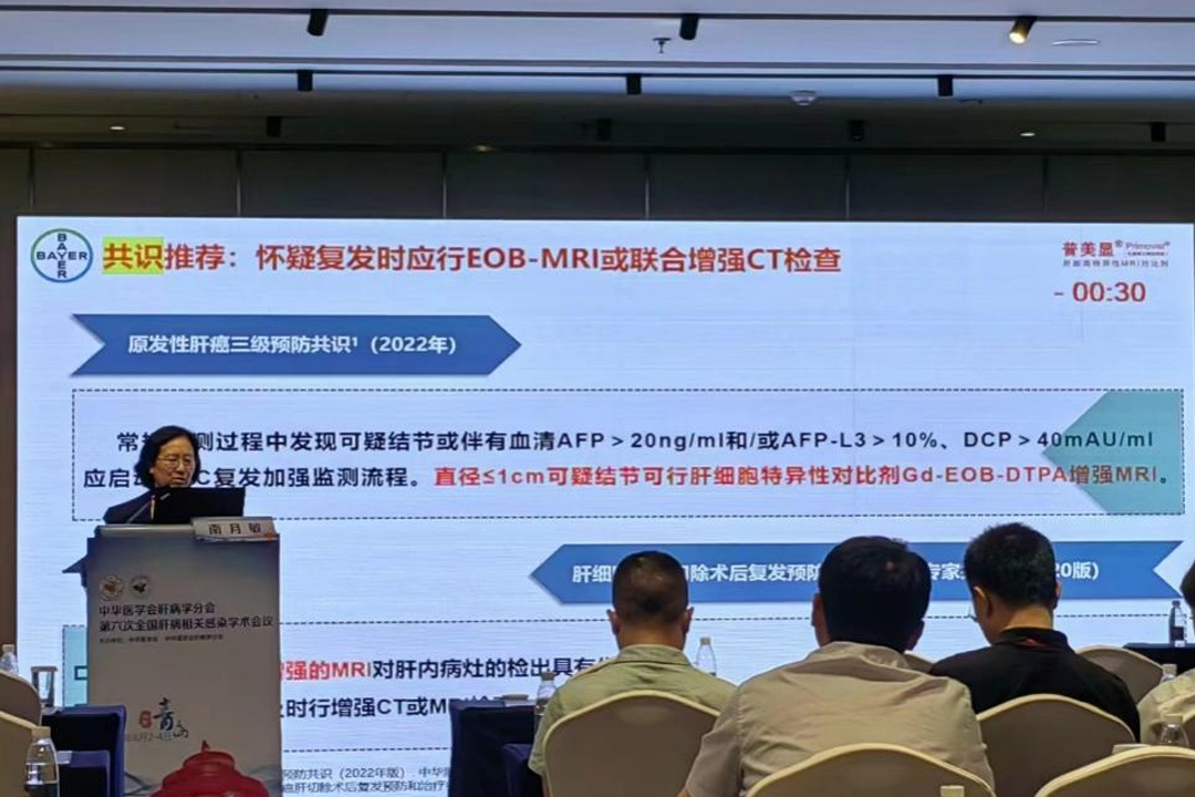 河北医科大学第三医院南月敏教授作“积极治疗,从新出发-从新指南看慢乙肝初治患者的优化治疗策略”学术报告,在讲到共识推荐:怀疑复发时应行EOB-MRI或联合增强CT检查时,指出常规检测过程中发现可疑结节或伴有血清AFP>20ng/ml和AFP-L3>10%、DCP>40mAU/ml,应启动HCC复发加强监测流程。