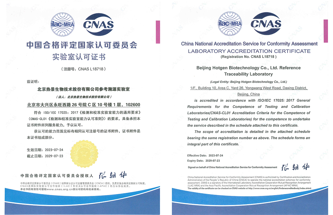 热景生物参考溯源实验室正式通过中国合格评定国家认可委员会(CNAS)ISO17025和ISO15195认可!