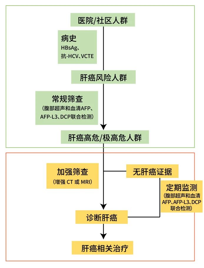 《方案》将病毒性、代谢性慢性肝病患者,特别是伴有肝纤维化、肝硬化患者等肝癌高风险人群列为重点监测对象。在随访管理过程中检测血清甲胎蛋白(AFP)、甲胎蛋白异质体(AFP-L3)、异常凝血酶原 II(DCP)三项肝癌相关标志物,同时进行肝脏超声弹性成像、肝脏超声及其他影像学检查。