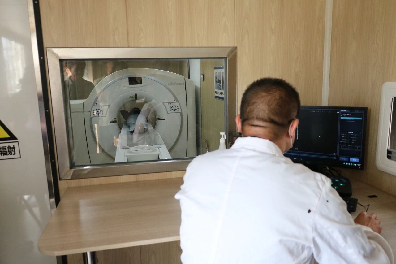 活动现场,一辆搭载先进设备车载CT诊疗车格外引人注目。工作人员有条不紊地引导群众排队登记,依次为群众进行胸部与肺部的免费CT筛查。车载CT检查方便快捷,能够有效筛查肺部结节、早期肿瘤等病变,对于呼吸系统疾病的早发现、早诊断、早治疗具有重要意义。